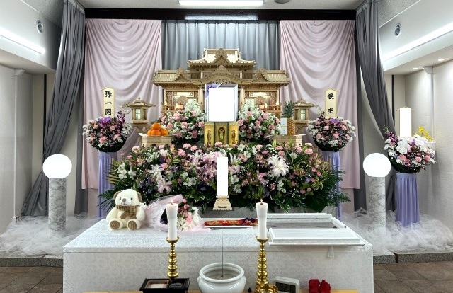 さいたま市見沼区東宮下のお客様、施設より弊社にお連れしてご安置。ご安置期間中、ご遺族立会い納棺の儀をおこない、亡くなられてから8日後に浄土宗の菩提寺様により葬儀が執り行われました。