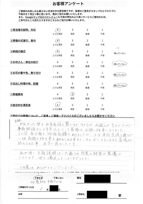 火葬式 お客様の声